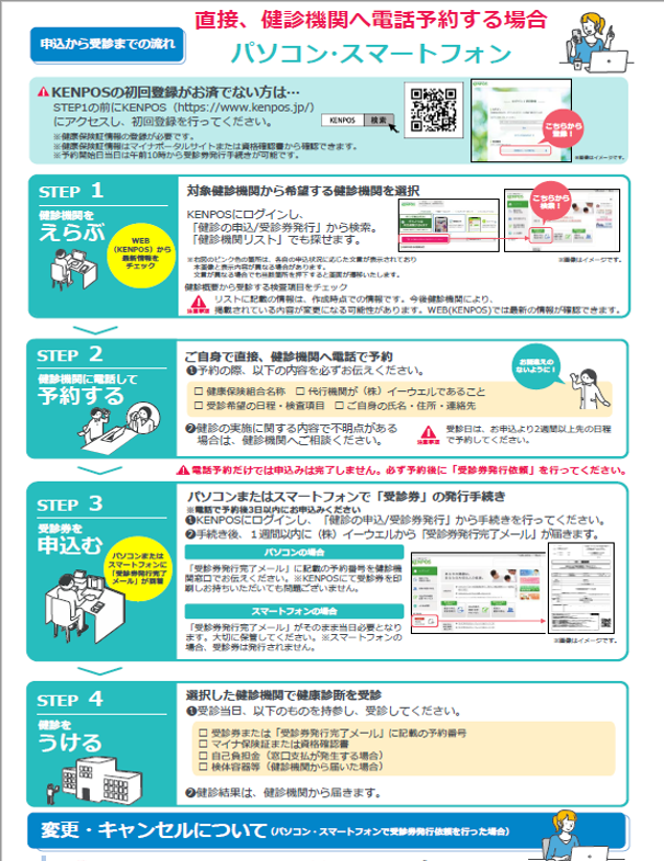 「KENPOS」とは、栗田健保が契約する検診予約代行機関(イーウェル社)が提供する予約サイト