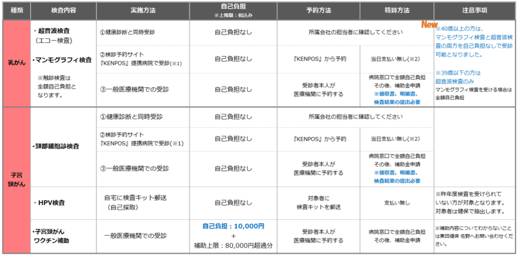 ・自治体などで女性のがん検診費用補助を受けた方は補助金の申請対象外です。